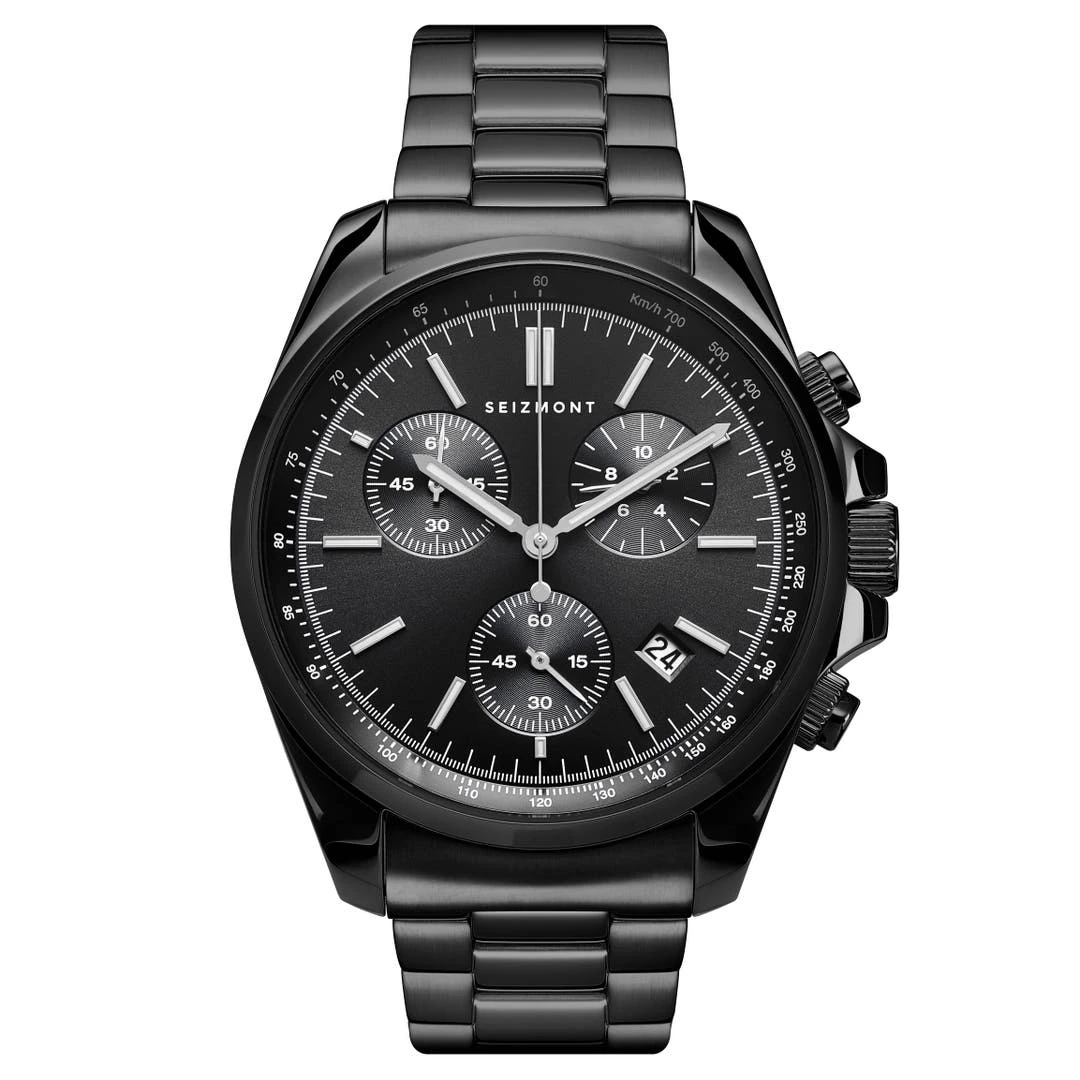 Ce chronographe en acier inoxydable chirurgicale est Ă©quipĂ© d’un mouvement japonais d’une grande prĂ©cision et d’un verre saphir antireflet pour une lisibilitĂ© maximale.